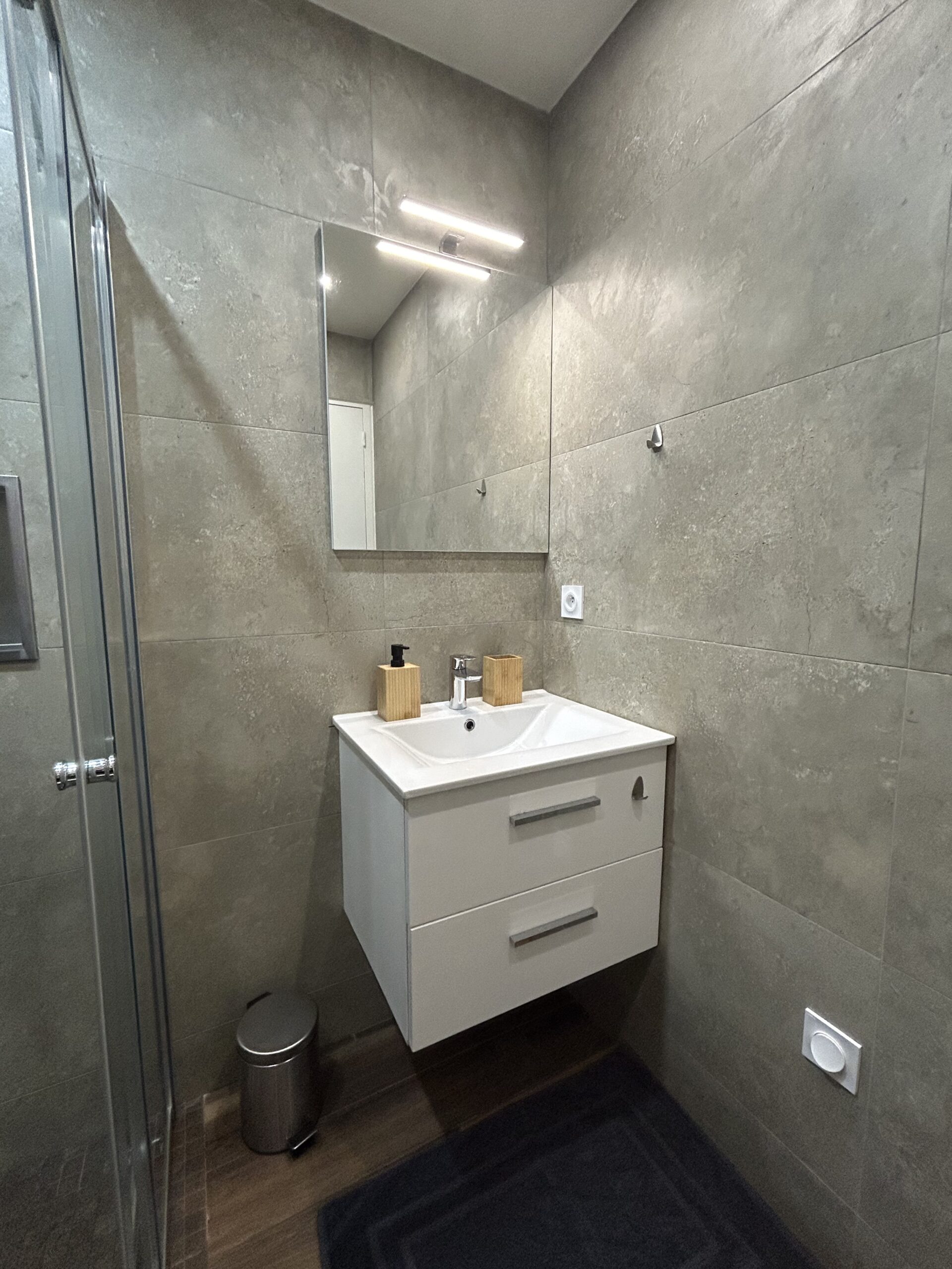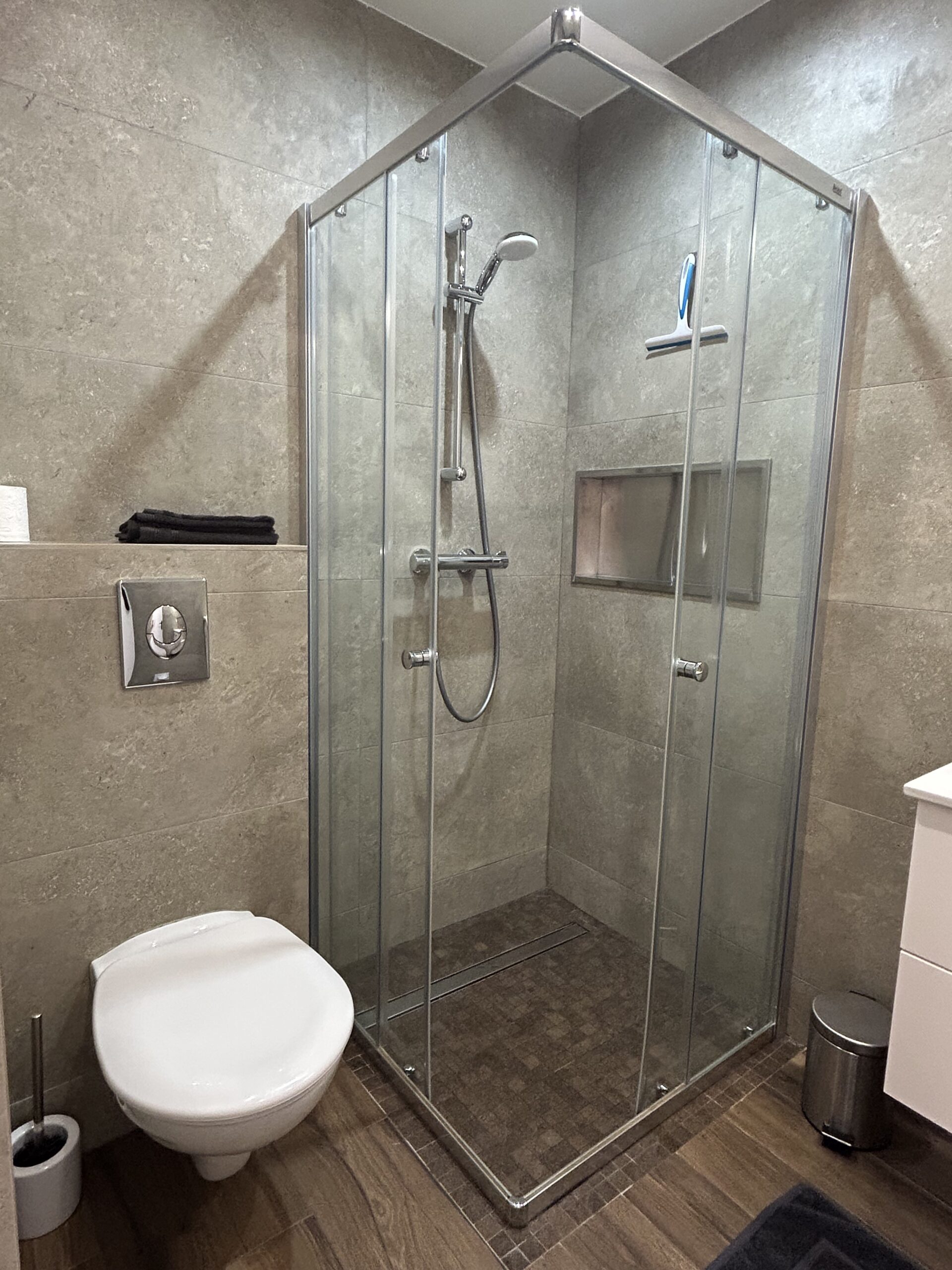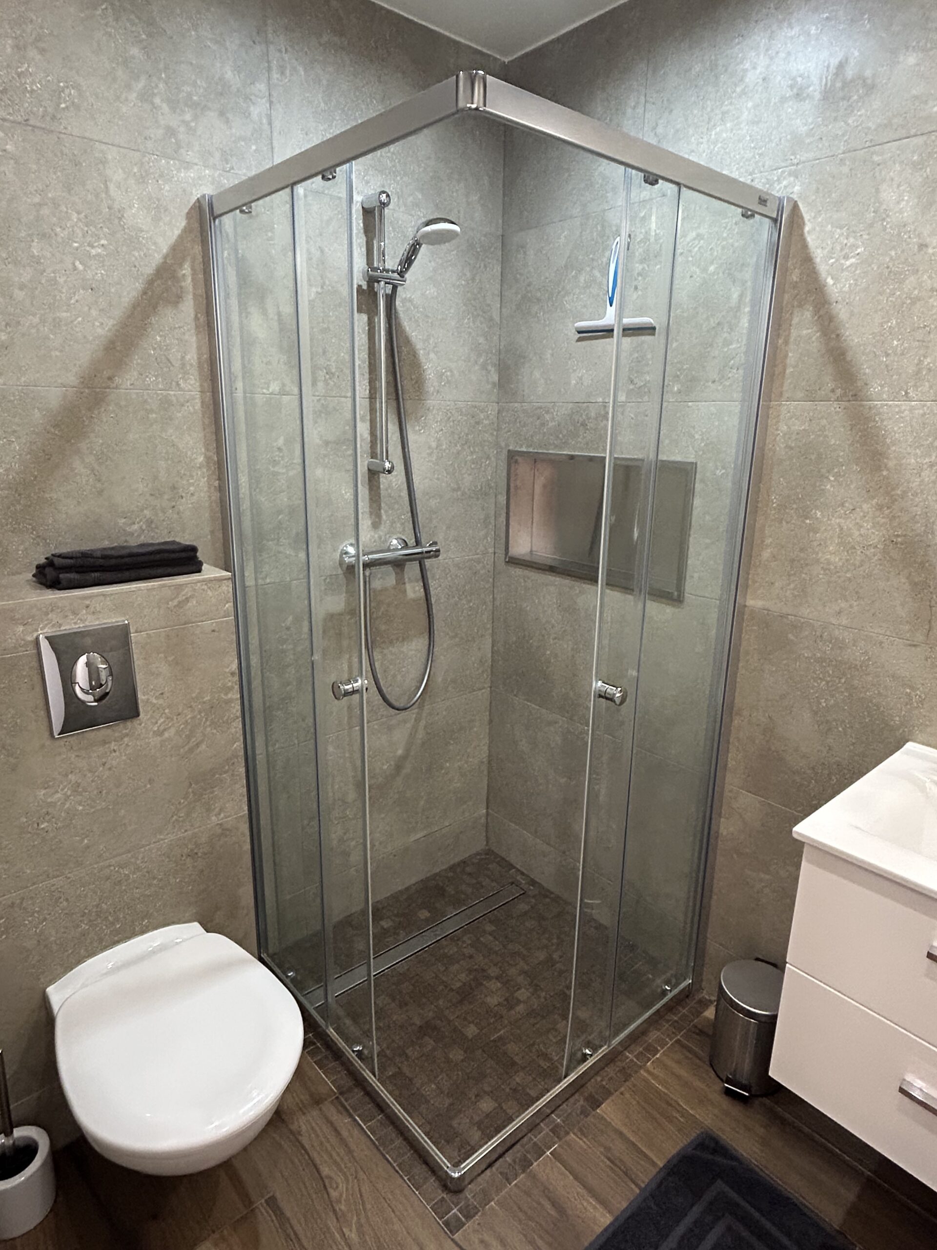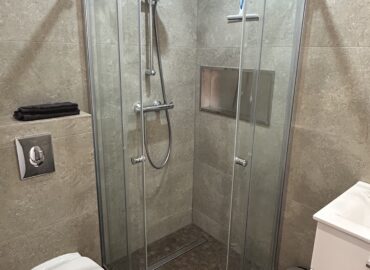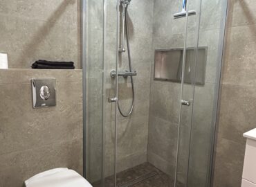 🚿 Modern shower room with toiletries